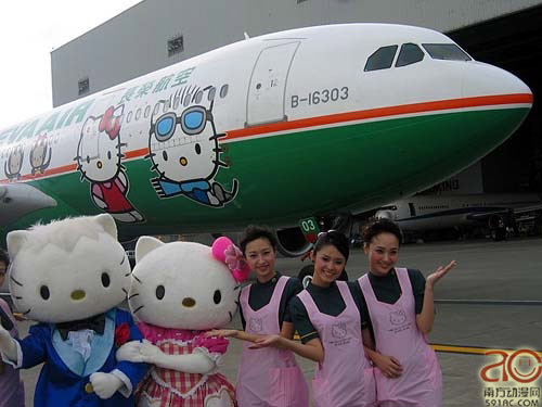 “HelloKitty”的版权公司日本三丽鸥公司的分公司“台湾三丽鸥”负责此次合作的协助工作,目前这种绘制有“HelloKitty”的空中客车每日一架次往返于中国台北和日本福冈之间。首发航班将于22日从台北出发。kitty的设计除了机身外,还被印制在机内食品和飞机乘务员的围裙等处。