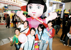 第二届中国动漫节动漫展上市民们兴奋地与动漫人物合影。