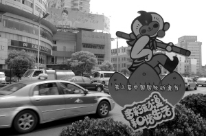 4月15日,在杭州环城西路交通绿化带上,刚刚竖起的动漫节吉祥物“乐乐”引人注目。第三届中国国际动漫节将于4月28日在杭州开幕,由美术大师韩美林亲笔绘制的“乐乐”,一亮相就受到了人们的喜爱。