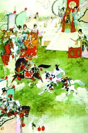 中央电视台举办的中秋晚会,数以亿计的观众欣赏到了舞台背景显示的中国年画《嫦娥奔月》。画中的嫦娥衣袂飘飘,云髻玉面,秋波流转,脚踏祥云,向着一轮桂枝婆娑、殿阁仙山的明月飞升而去……