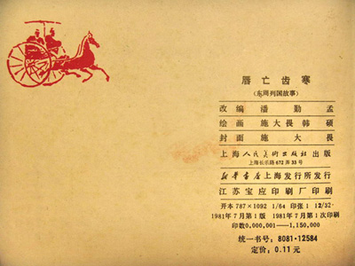 今天上午,记者在大河论坛看到,这本名为《唇亡齿寒》的连环画,发行于1981年7月,上海人民美术出版社出版发行,全册共分85个图文并茂画面,定价仅为0.11元。该帖文发出后,跟帖不断,好评如潮。