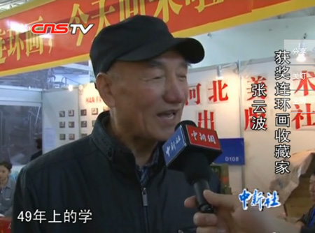 吉林连环画收藏家张云波接受媒体采访。(视频截图)