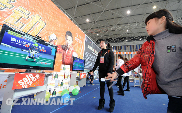 11月22日,一名小观众在第七届亚洲青年动漫与数字艺术大赛暨中国(贵阳)数字产业投洽会上体验一款新开发的网球游戏。新华社记者 杨楹 摄