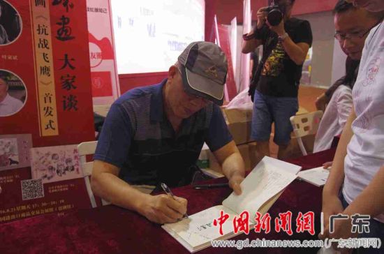 画家签售《抗战飞鹰》