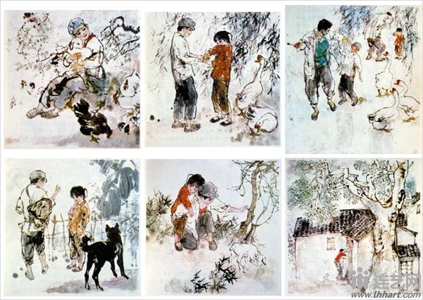 当时,创作整本连环画、插图、大幅的中国画都在业余时间完成,于是我们过着白天上班、晚上通宵达旦地创作、第二天又去上班的生活,周而复始,既没有稿酬,也不能署名。但这一切完全无关紧要,唯一让人牵肠挂肚、激动不已、热血沸腾的就是画画及其整个过程。